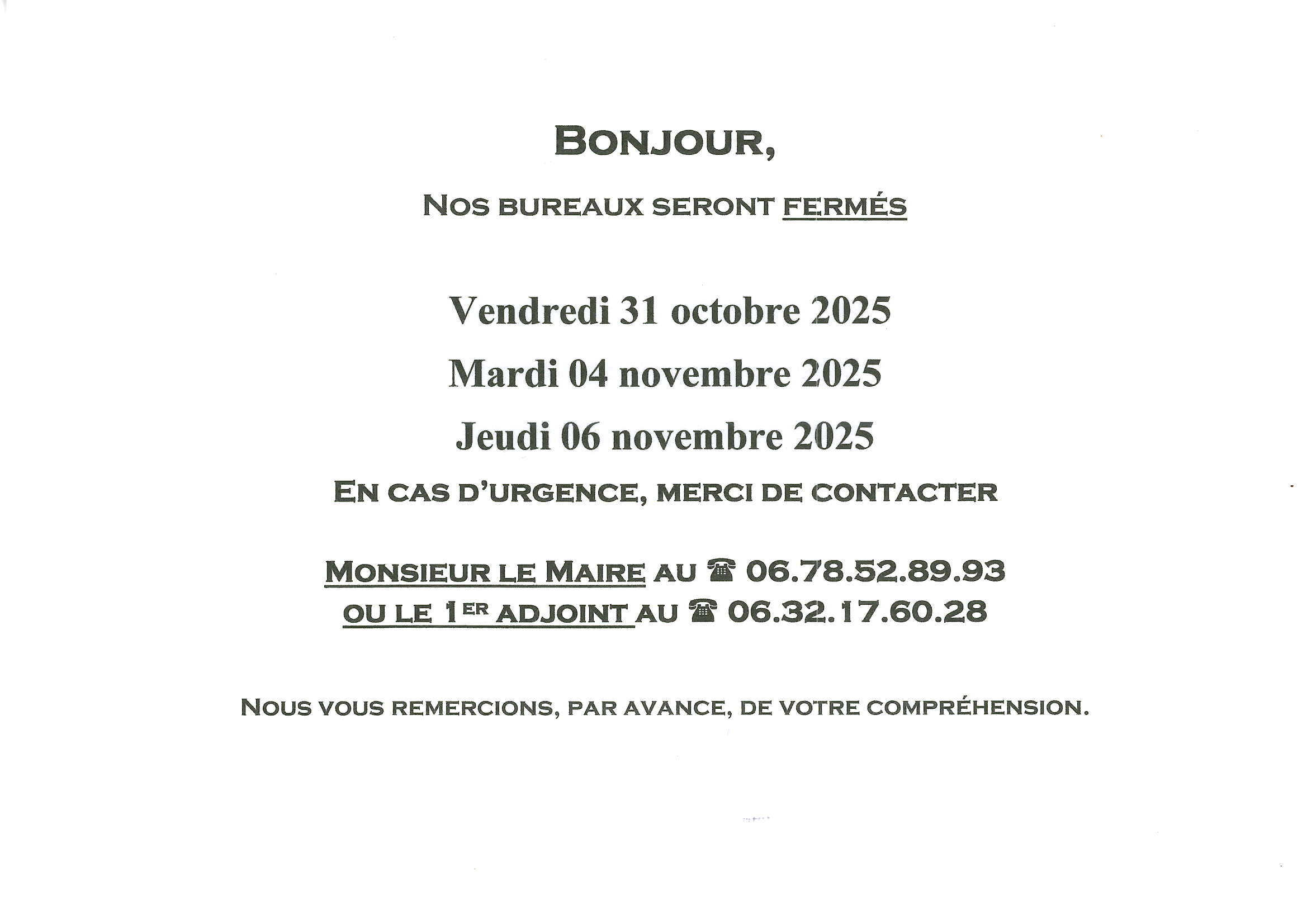 Fermeture de la Mairie