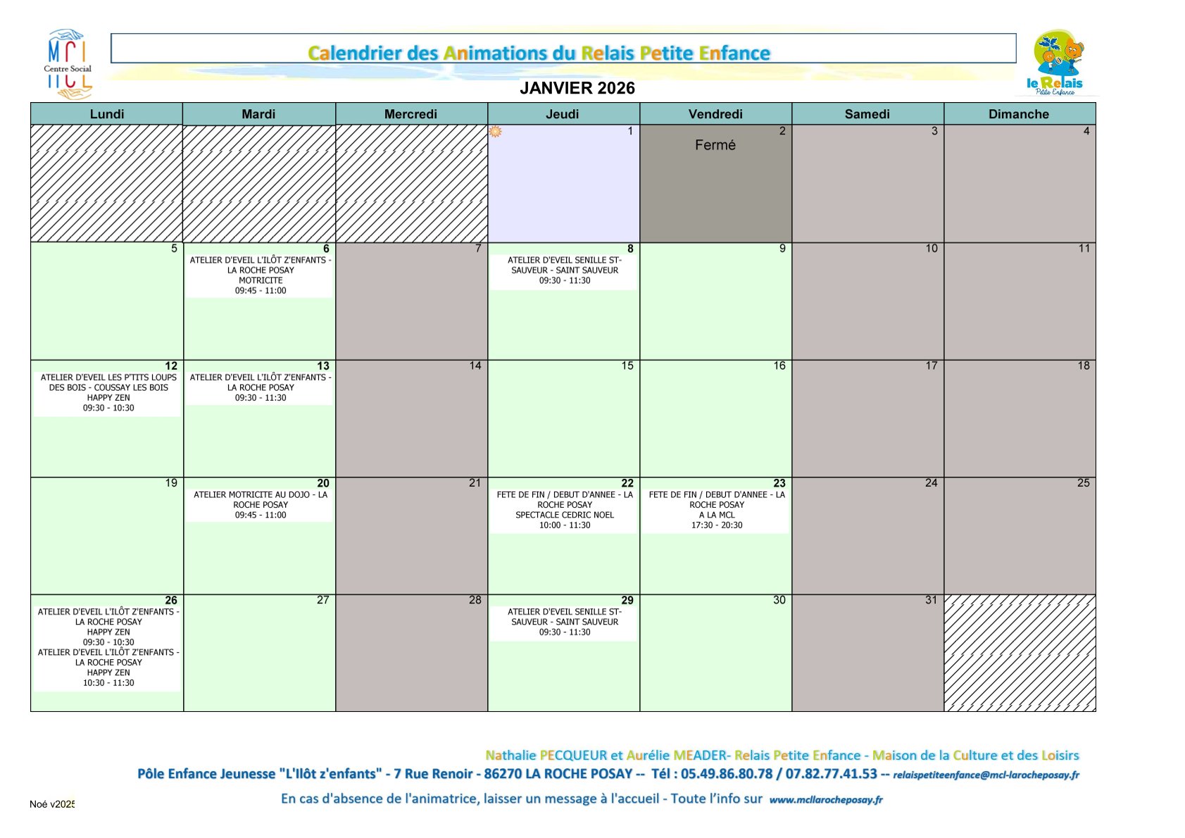 MCL : Planning des animations Relais petite Enfance déc 2025 janv fév 2026